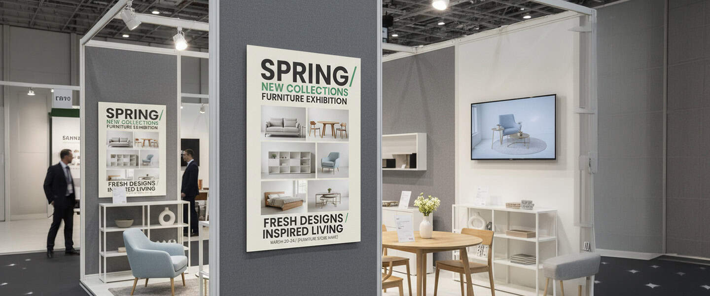 Großformatige Poster ziehen Besucher an, bevor sie Ihren Stand überhaupt erreichen.